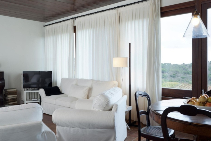 An open gallery invites you to enjoy the beauty of the Marina Mountain Range Park and the mosaic of vineyards surrounding the farmhouse, while you relax by the fireplace with a warm cup in your hands.