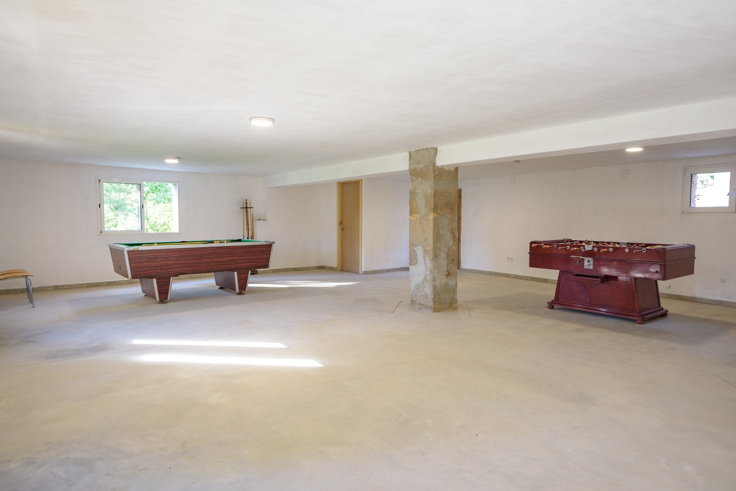On the ground floor of the Large Barn at Cal Fargas, you'll find a spacious games room designed for both children and adults to enjoy. It's equipped with a pool table and a foosball table — perfect for moments of laughter and friendly competition. There's also a toilet and a small fridge for extra convenience.