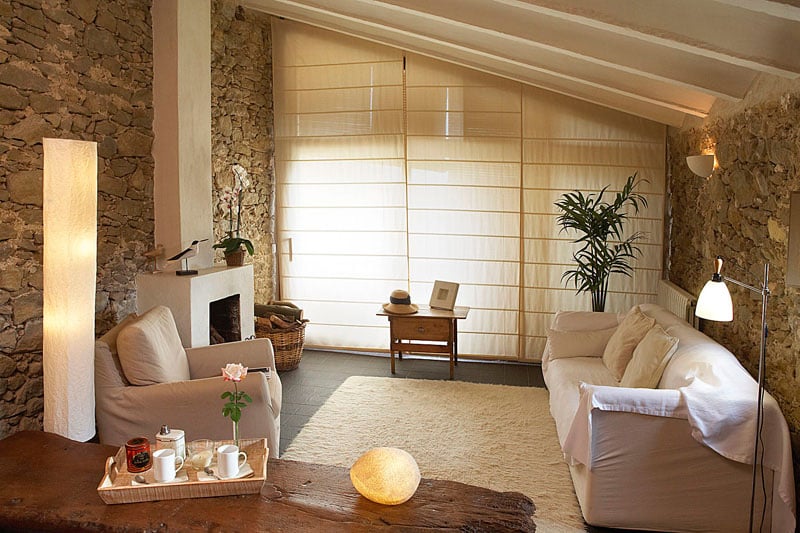 They have preserved the old stones and bricks, the firm turns cane and delicate vaults handkerchief tell us about their history, and have combined with modern finishes, stucco, graffiti... with live sometimes colors and earth or neutral others, always creating captivating, comfortable, minimalist environments, if necessary, transmitting simplicity, serenity, peace, harmony, welcome... a good place to spend an afternoon before the fire, watching as it rains outside with cloudy or reddish Gavarres at sunset on.