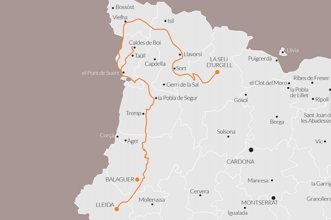 The day rises in the Val d'Aran in this penultimate stage that has taken you to the Pyrenean wonders of Catalonia. Today, you will travel 74 kilometers to the end of the stage in Sort.