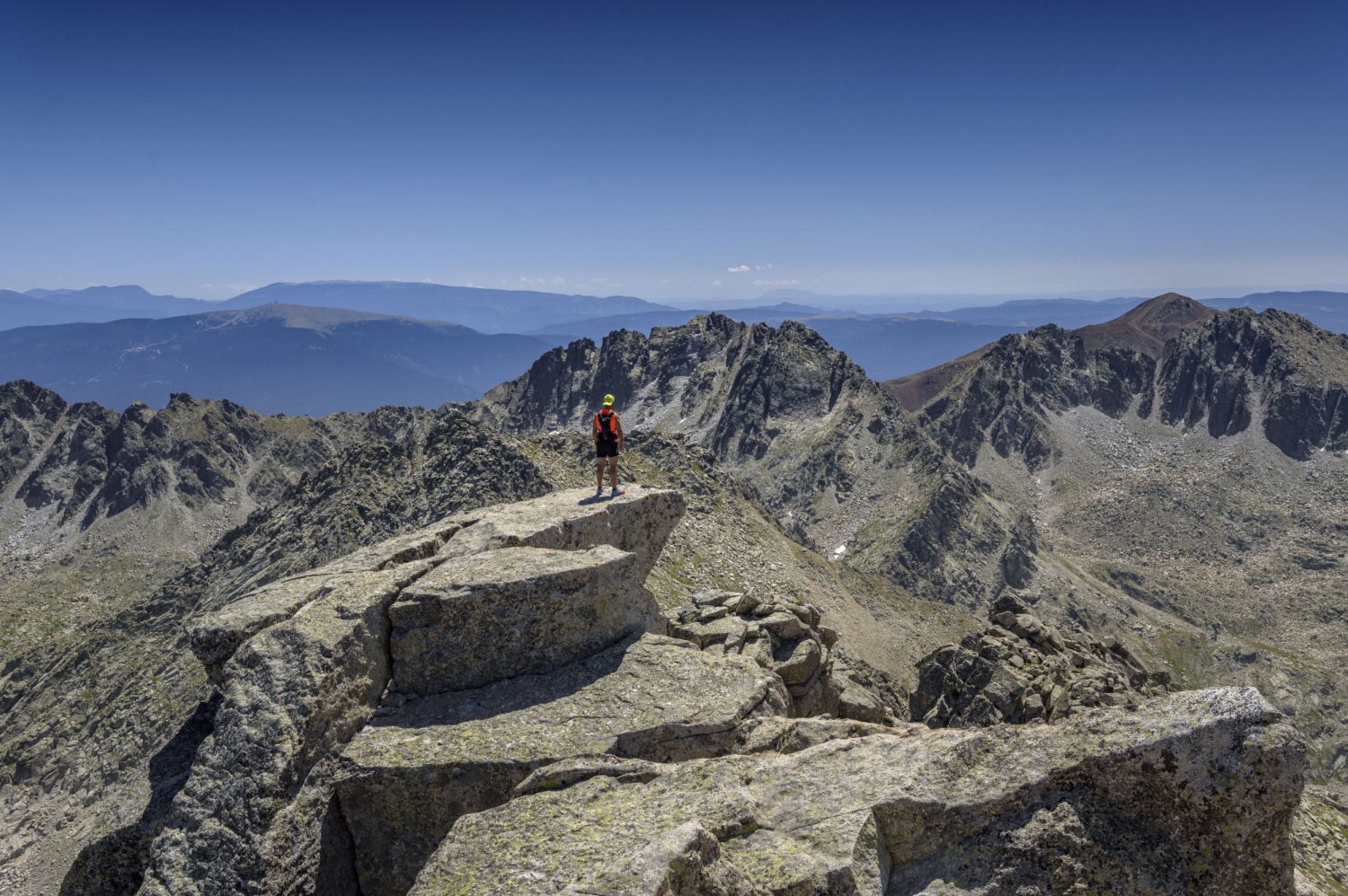 The view from up here is worth it, especially if we find an exceptionally clean day like we did: we can see from Montserrat to the Sierra de Guara to the south, with almost all the peaks of Aigüestortes around us, the Aneto, the Posets, the Turbon and the Cotiella in Aragon. Even with the camera we intuit the Pic de Midi de Bigorre observatory. On the north side: the Mauberme, the Pica d'Estats, the Encantats behind and, to the east, the Comapedrosa, various peaks of Andorra and Cerdanya (Monturull, Tossa Plana de Lles, Tosa d'Alp) and even the point of Puigmal, Carlit, Cadí and the pre-Pyrenean mountains of Port del Comte and Verd. An exceptional panorama.