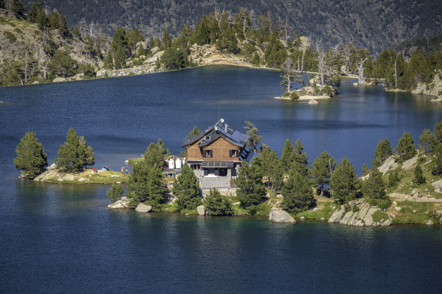 We will go down between rocks and pine trees to the Estany Negre dam. It must be said that this descent is one of the most beautiful moments of the itinerary, with the view of the Estany Tort and the Josep Maria Blanc Refuge in the middle of the pond. An idyllic postcard that we will not get tired of contemplating.