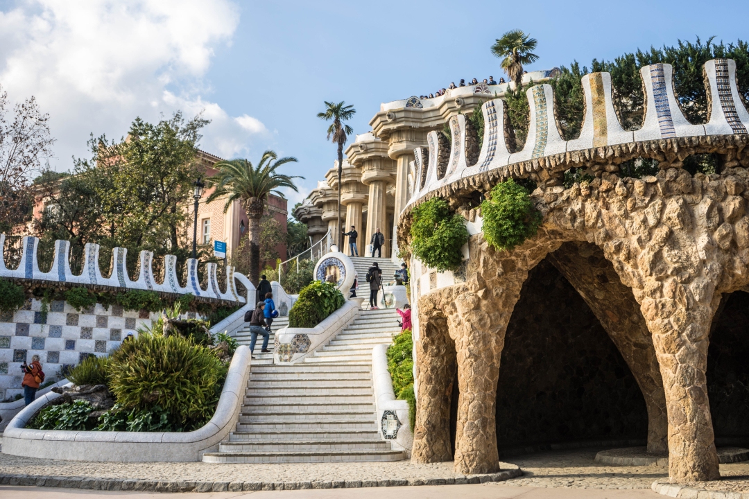 In the park we find the famous sculpture of the dragon, the square that rises above a room with a hypostyle roof and from which there are views of the city that you cannot miss or the entrance pavilions, accompanied by the famous ceramic trencadís for all sites. Park Güell was inscribed on the World Heritage List of Humanity in 1984.