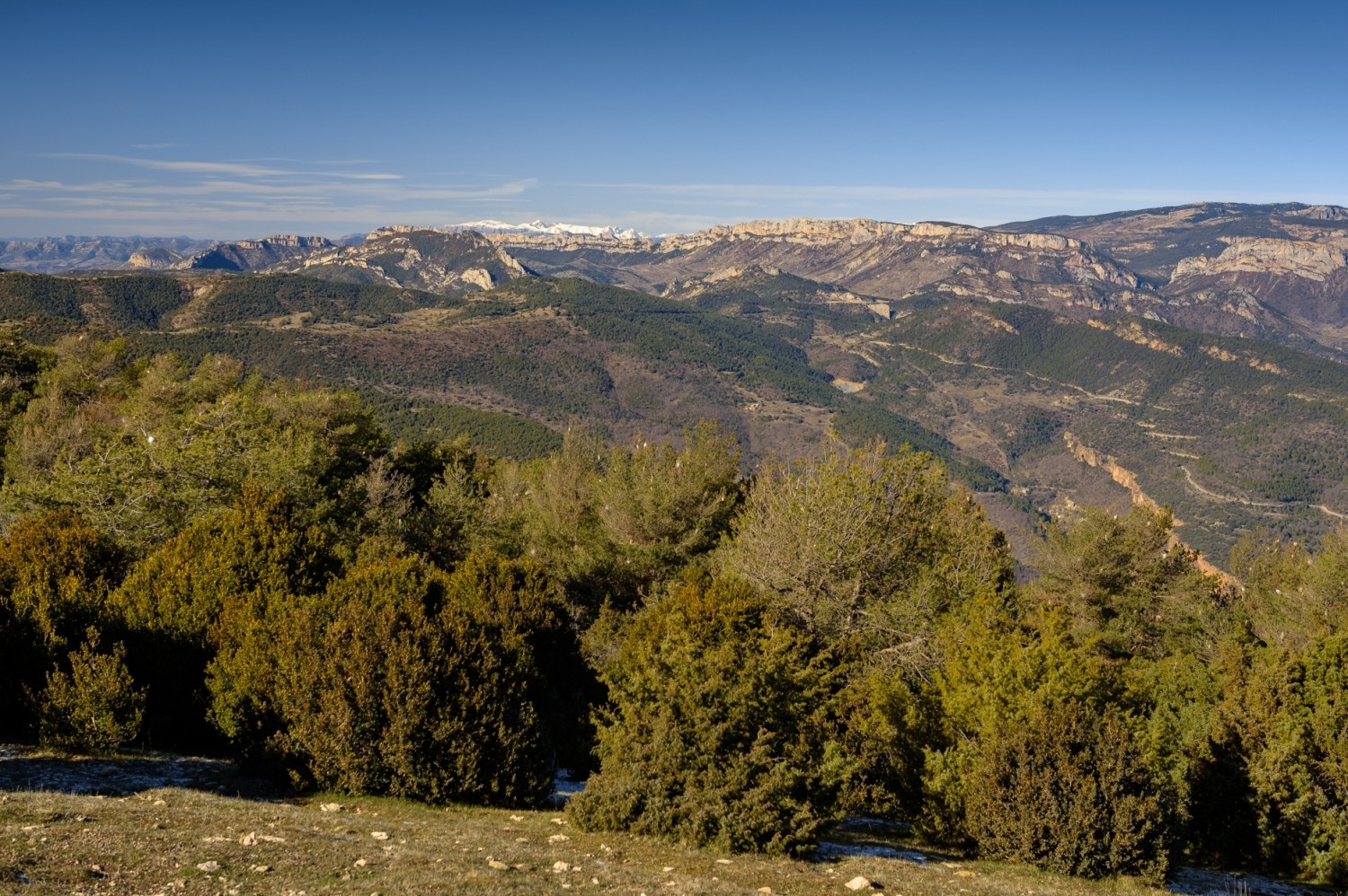 We have just reached the top by returning to the ridge track and following it until we reach the geodesic apex and the fire guardhouse. From here, if the day is clear, we will perfectly see the Oliana valley, the Rialb and Oliana reservoirs, as well as a large part of the Catalan Pyrenees and Pre-Pyrenees. On the day we went, in winter, we got to see from the Ports of Tortosa to the Pica de Estados and from Montseny to the Sierra de Guara. An exceptional panorama!