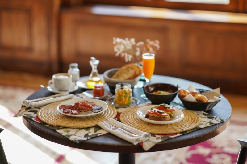 Desde desayunos artesanos hasta cenas íntimas con producto de calidad, la propuesta culinaria del hotel es una inmersión directa en la cultura gastronómica de la zona. El ambiente cálido del comedor, con vistas al bosque, convierte cada comida en un momento para recordar.
