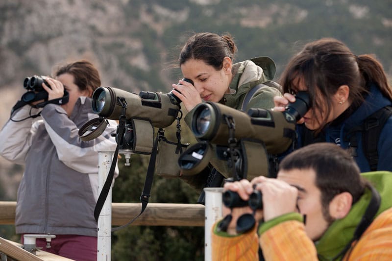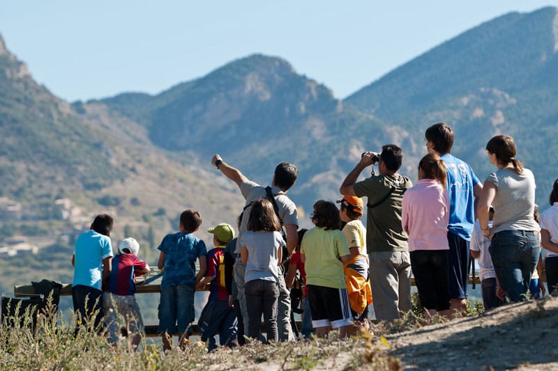 Saliendo desde Alinyà, de la mano de un guía-técnico de fauna y por un camino histórico, se llega al mirador de Els Voltors (excursión de unos 45-60'). Allí observamos con telescopios cómo los buitres se alimentan, cómo interactúan y cómo sobrevuelan el mirador.