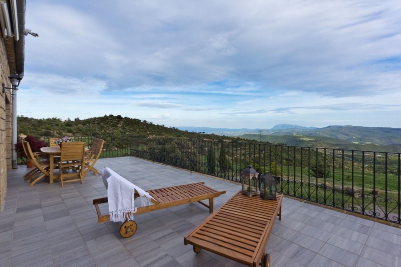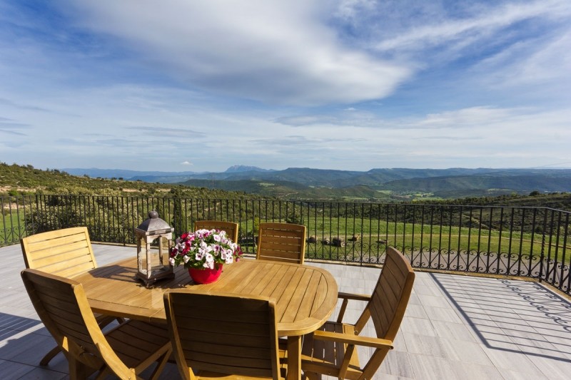 Les Corts de Biosca tiene dos habitaciones dobles, una habitación individual-biblioteca (que puede convertirse en doble), baño completo y aseo, cocina, comedor-sala de estar con chimenea, y terraza de grandes dimensiones. Tiene excelentes vistas a Montserrat y está plenamente equipada: calefacción, cocina con microondas y lavavajillas, lavadora, televisión, mobiliario para bebés, wifi… En el exterior, una era extensa, jardín y piscina integrada en un campo de cultivo. Se admiten animales de compañía.