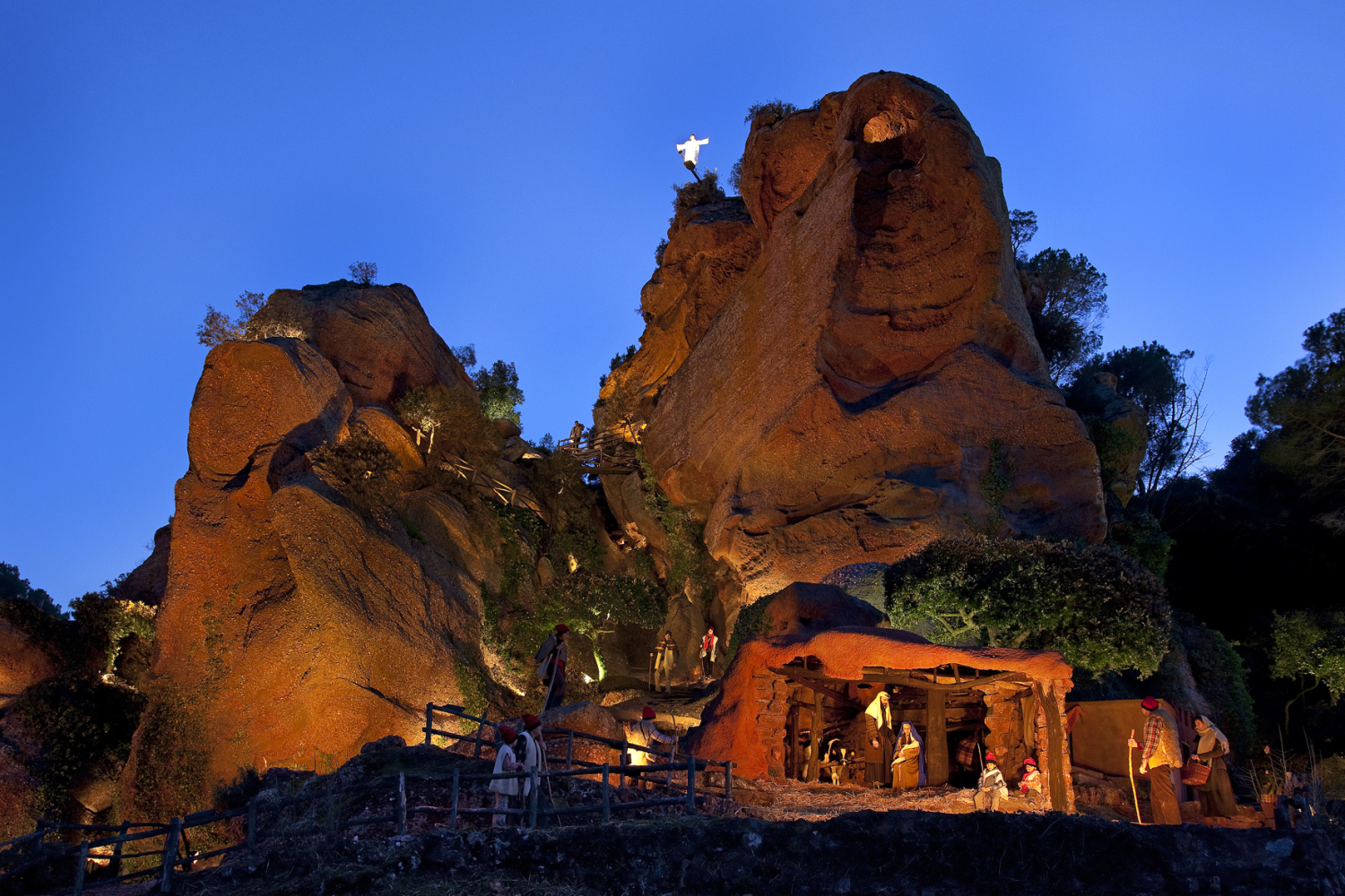 El marco escogido, la Penya del Corb, con más de 14.000 m² de escenografía natural, roca rojiza, vegetación y caminos que se despliegan como recibida en el corazón de la Navidad, crea una estampa difícil de olvidar.
