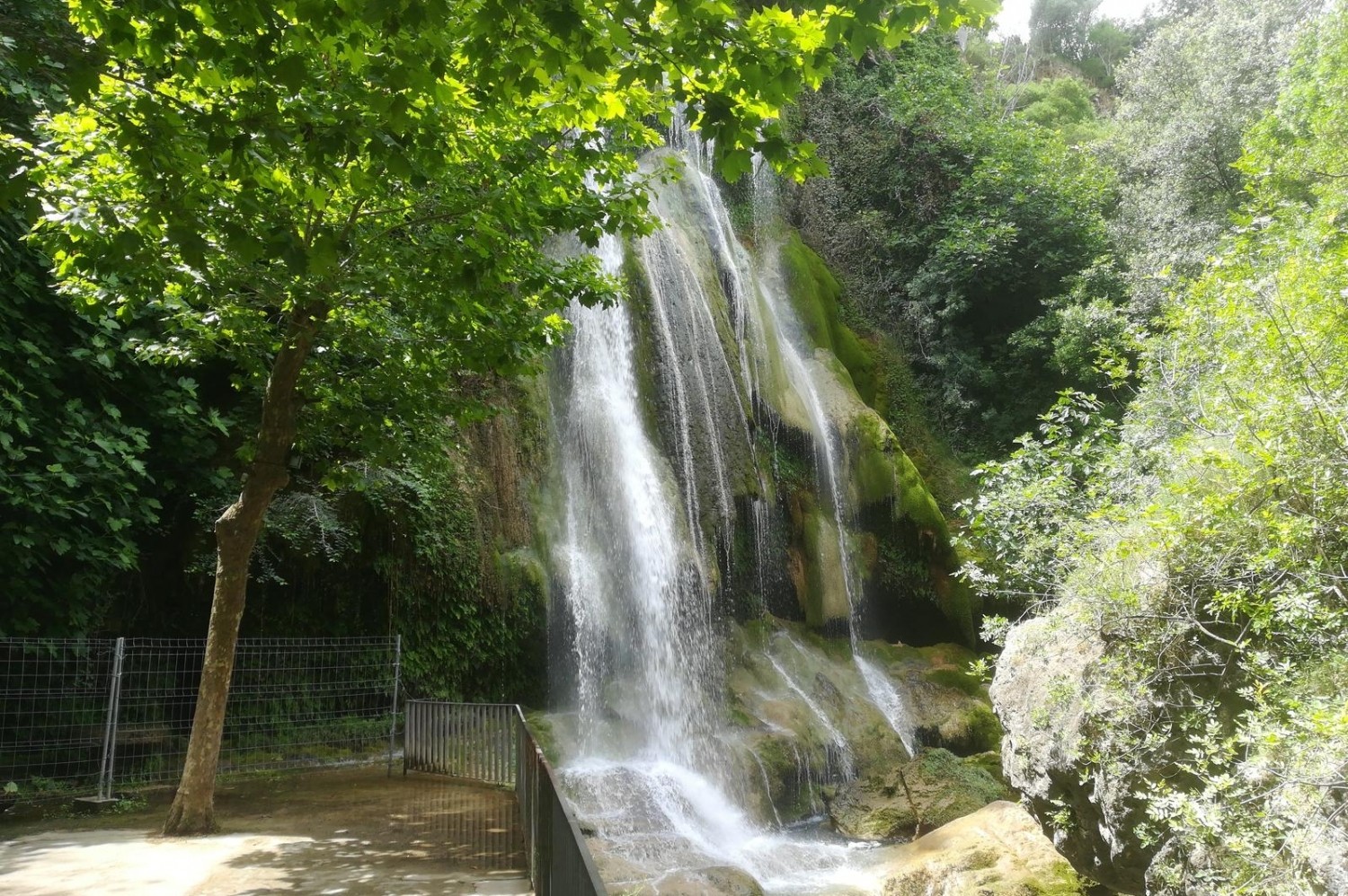 Al fondo se puede divisar el barrio de Les Escaules, resaltando la torre medieval y un salto de agua, que en época de lluvias se convierte en un magnífico espectáculo.