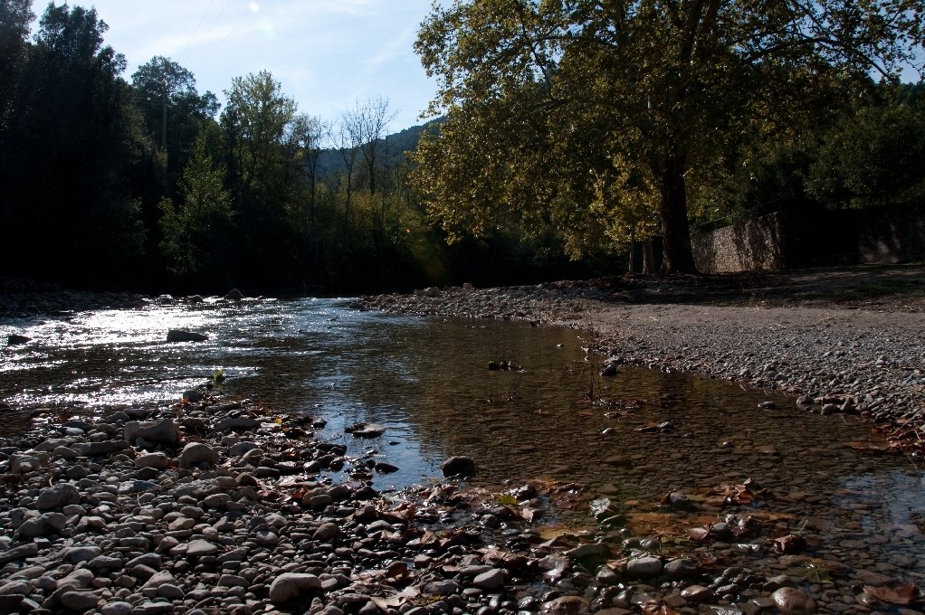 El camino se ensancha notablemente en este punto. A unos dos kilómetros gira a la izquierda para volver a encontrar el río y llegar a Pont de Molins.