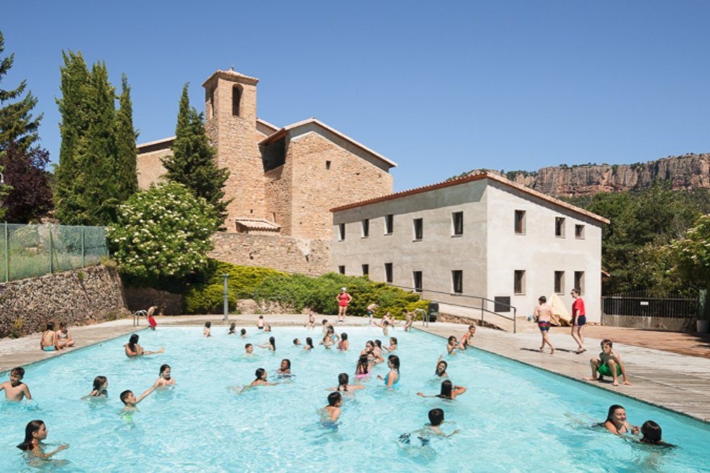 Aquesta casa de colònies es troba situada en un indret elevat, amb vistes que s'abasten fins als impressionants cingles de Busa. L'alberg i l'església, integrats harmoniosament, s'envolten de paisatges idíl·lics de prats i boscos.
