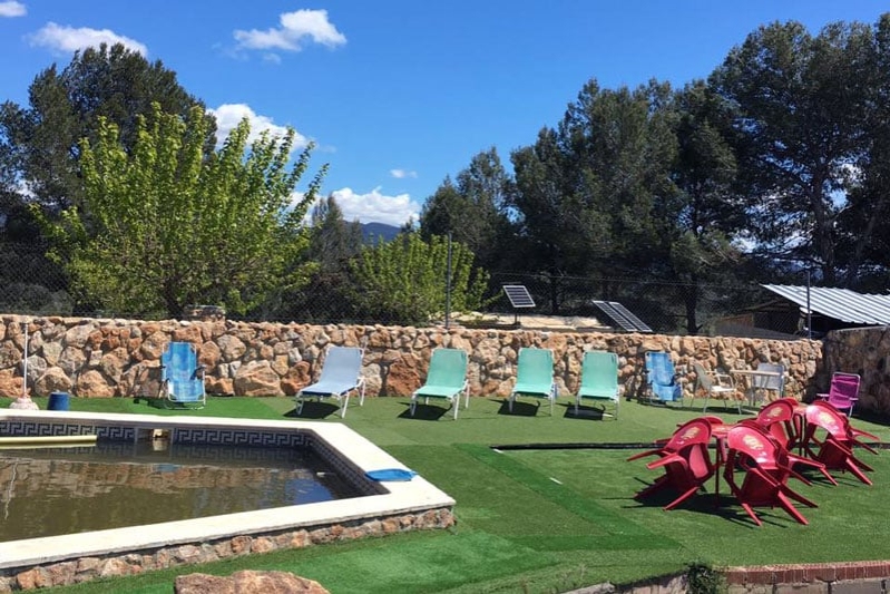 Els nens tenen una zona d'activitats infantils amb gronxadors, tobogans, etc i una piscina per refrescar-se i divertir-se.
