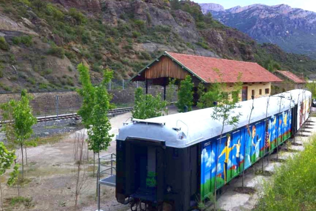 Els vagons i l'estació estan ubicats a la vora del Pantà de Camarasa, un indret idíl·lic per fer excursions, piragüisme i mil descobertes en plena natura.