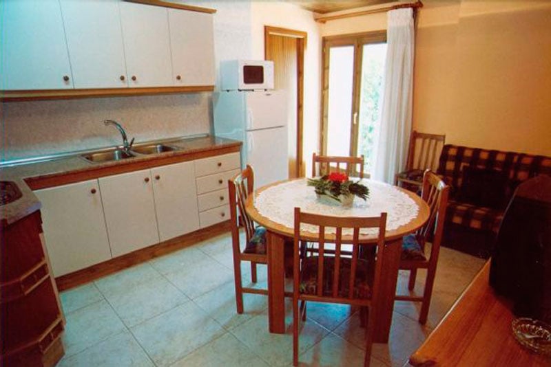 La casa té una cuina-menjador a nivell de l'entrada amb llar de foc, un equip de música, TV i vídeo. La cuina es troba totalment equipada amb microones, nevera-congelador, rentavaixelles, forn, cuina vitro-ceràmica, cafetera i altres estris com rentadora, planxa etc.