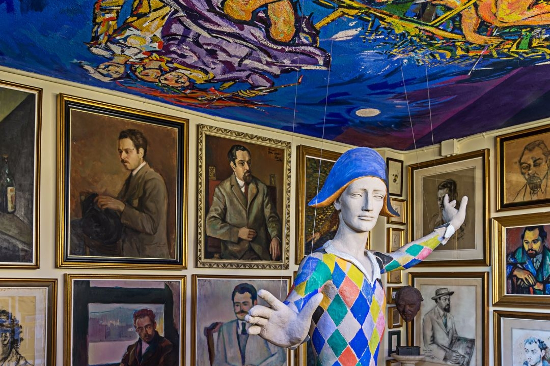 La Casa del Pintor és la casa d'un col·leccionista: sales, escales, planta baixa, soterrani, pisos... Un laberint on el visitant va descobrint la complexa, interessant i diversa col·lecció de l'artista. Una portalada que va pertànyer al convent dels Àngels de Barcelona ens condueix al vestíbul, on una gran fotografia d'Abelló ens dóna la benvinguda. A partir d'aquí, el visitant se submergeix en l'univers d'Abelló.