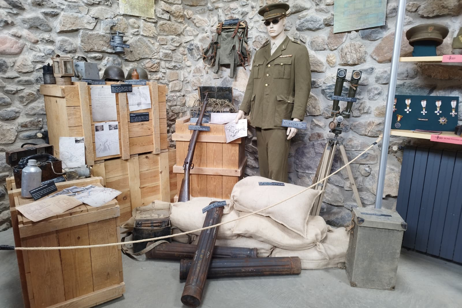 Un cop acabat l'audiovisual, equipem el visitant amb casc i llanterna per emprendre un recorregut ben senyalitzat i adaptat on transcorre per un camí de muntanya durant el qual es poden visitar un total de vuit fortificacions recuperades de diferents tipologies: punts de combat, punts d'artilleria… i endinsar-se fins i tot en un entramat de galeries subterrànies connectades entre si.