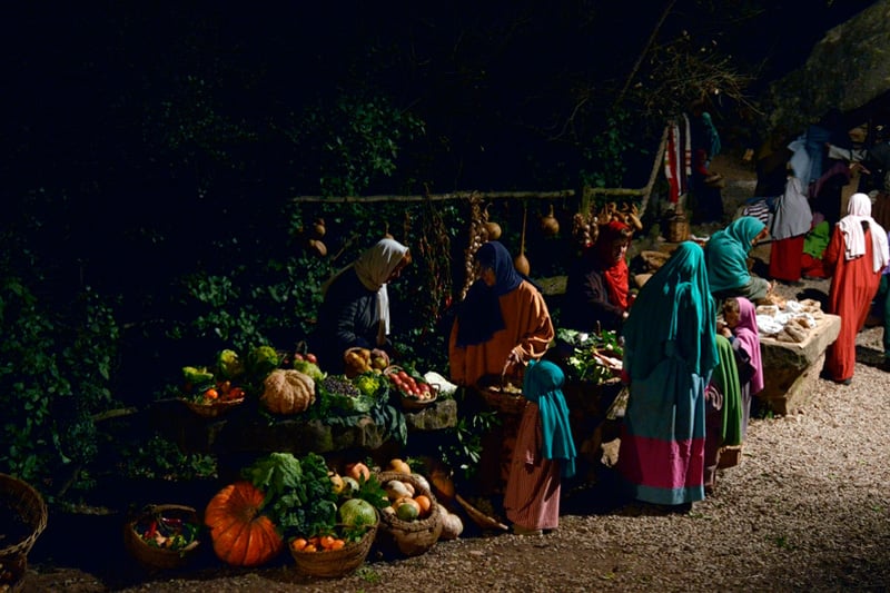 Escenes dinàmiques, plenes de moviment, que reprodueixen oficis i activitats de l'època. L'ambientació i la participació de nombrosos actors transporten el públic a un temps de vida rural i artesanal.
