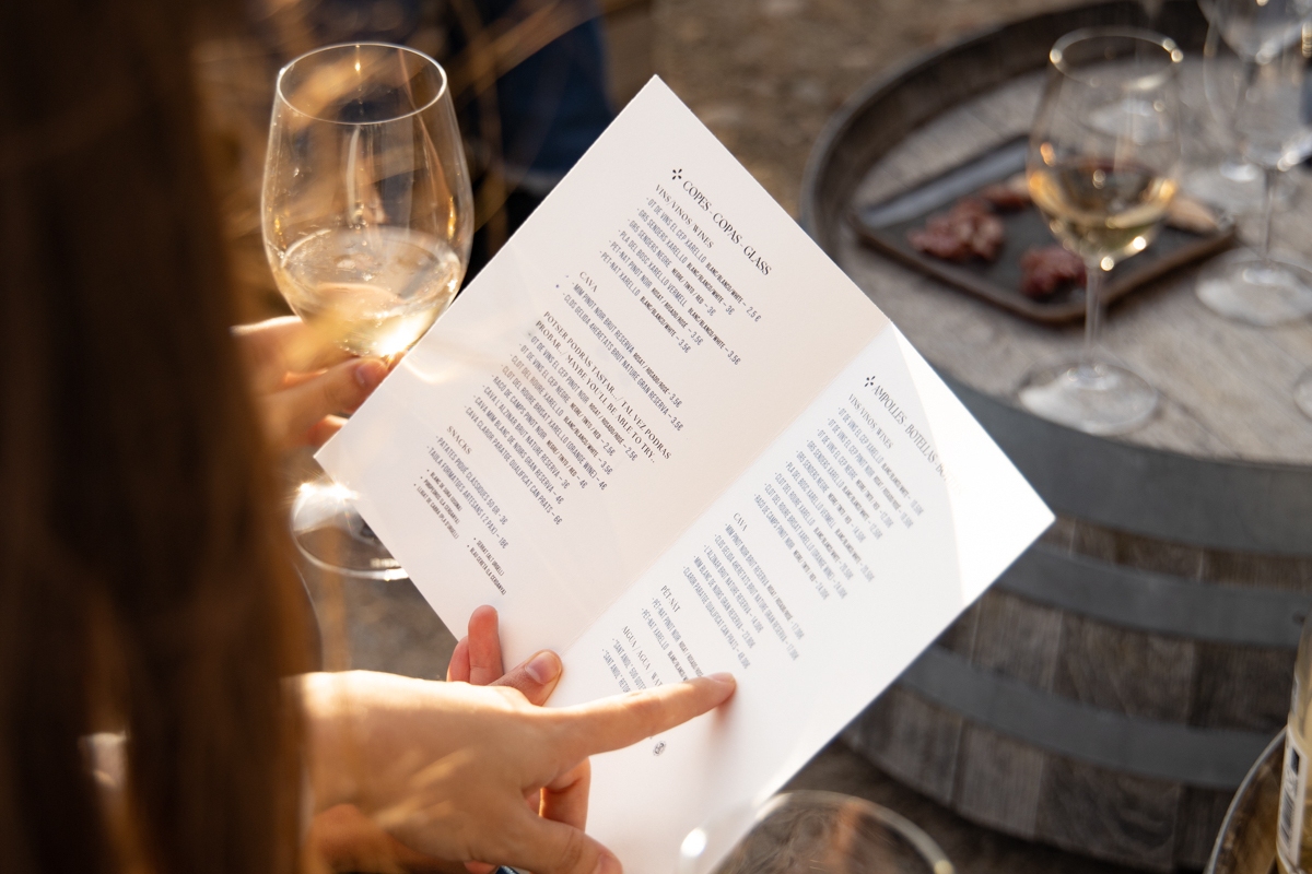 A la nostra carta trobaràs els nostres vins i caves així com la possibilitat d'acompanyar-los amb alguns productes locals.
