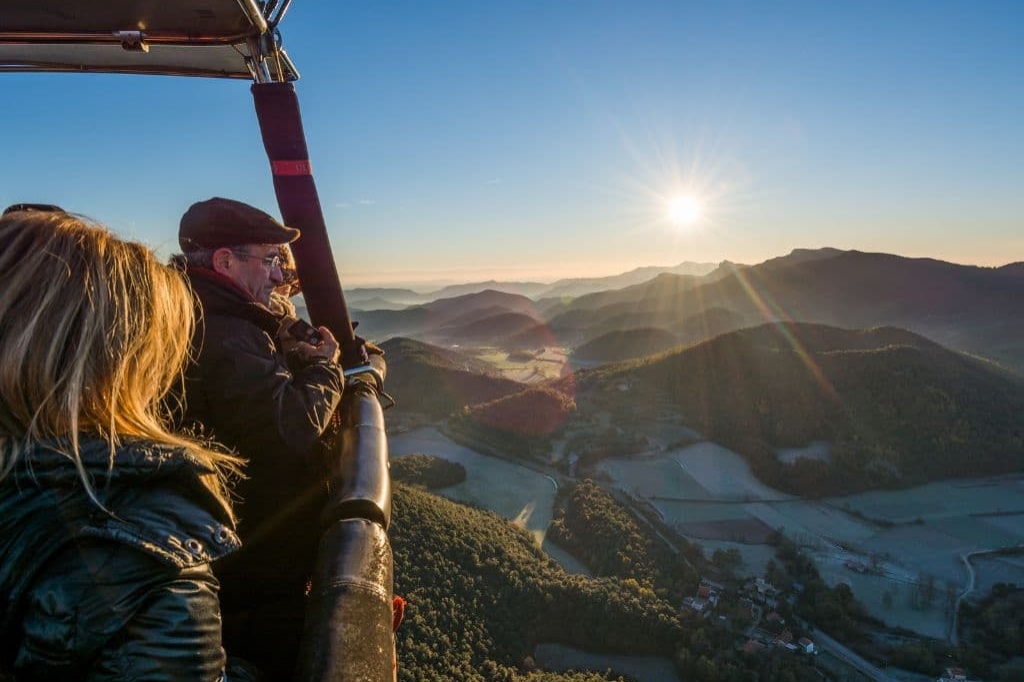 En dies clars, podem observar Montserrat, el mar Mediterrani, el Pedraforca, el Canigó, el Montseny... Sempre amb els Pirineus al fons i els volcans sota els nostres peus. L'activitat comença a primera hora del matí (entre les 6:30h i les 8h, segons l'època de l'any). És el moment que l'atmosfera està més freda i estable i el vent més encalmat.