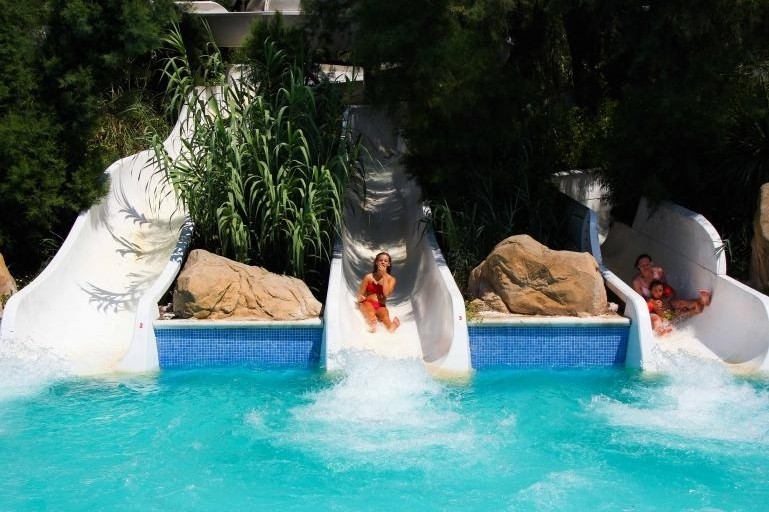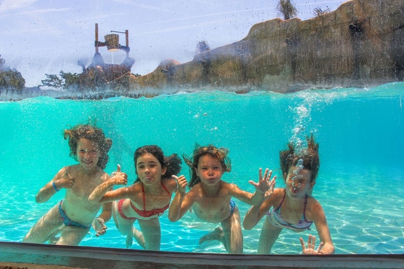 Amusement garanti avec Black Hole, Camello, Kamikaze… les espaces enfants Tropic Island et Pirate Island, ce dernier sur le thème des pirates. Cet espace est un concentré du parc pour les enfants. Ils y retrouveront toutes les attractions pour adultes à leur échelle : Mini-toboggans, Kamikaze… et même une piscine à vagues ! Une attraction de 3 000 m², unique en Europe, où les enfants pourront vivre leur propre aventure en toute sécurité. Toboggans palpitants, descentes à perte de vue, bassins relaxants, rivières tumultueuses… Prenez de la vitesse sur Octospeed, une attraction avec 8 pistes rapides chronométrées, pour une descente frénétique et amusante. Qui remportera la course ? Vivez l'expérience du rafting sur l' Anaconda et amusez-vous dans la piscine à vagues.