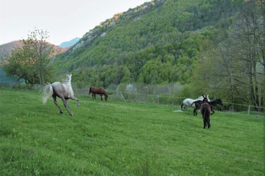 Ce est une propriété avec de vertes prairies où paissent les chevaux, avec des forêts luxuriantes de chêne, frêne, hêtre, etc. et un ressort qui tourne autour de autour de la maison.