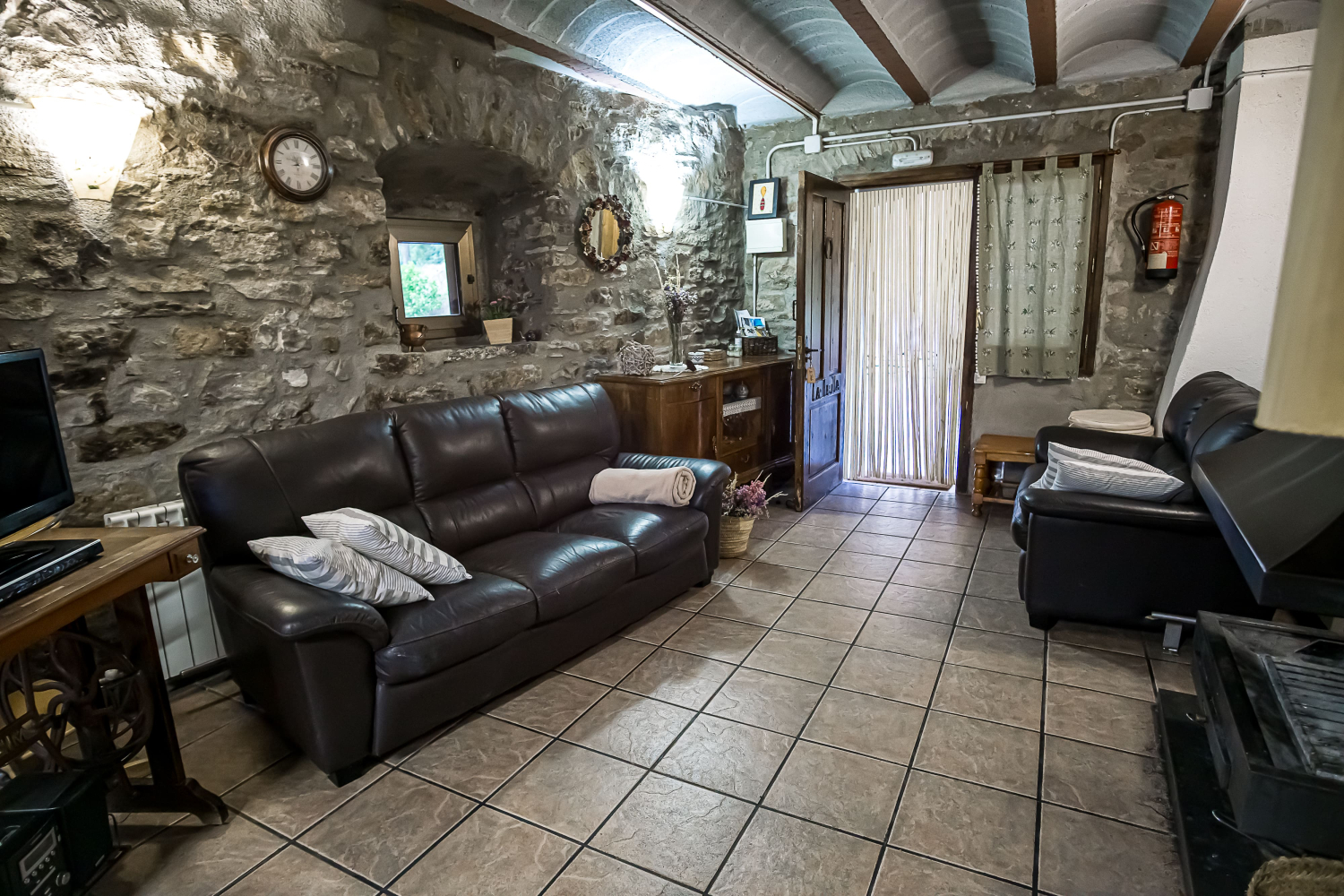 Elle comprend trois chambres doubles et une chambre avec deux lits simples, deux salles de bain complètes, une cuisine entièrement équipée, une salle à manger et un salon avec télévision et lecteur DVD. N'oublions pas la cheminée, idéale pour se détendre au coin du feu lors des soirées fraîches et pour discuter en soirée.