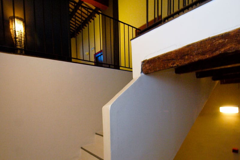 L'hôtel a la forme caractéristique d'une papeterie et les 46 fenêtres panoramiques qui en sont le symbole ont été conservées. D'autres éléments d'origine ont également été conservés, comme les poutres, les murs en pierre, les escaliers et les voûtes catalanes.