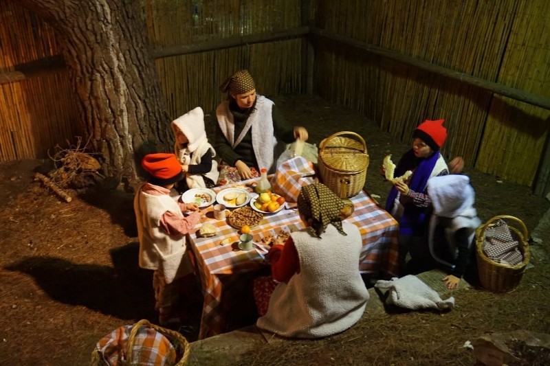 À La Pobla de Montornès, nous avons un cadre incomparable pour la crèche vivante, la colline où se trouve l'ermitage de la Vierge de Montornès, à seulement un kilomètre du centre-ville, un lieu entièrement naturel entouré de végétation, de pins et de caroubiers à côté d'une ancienne ferme.