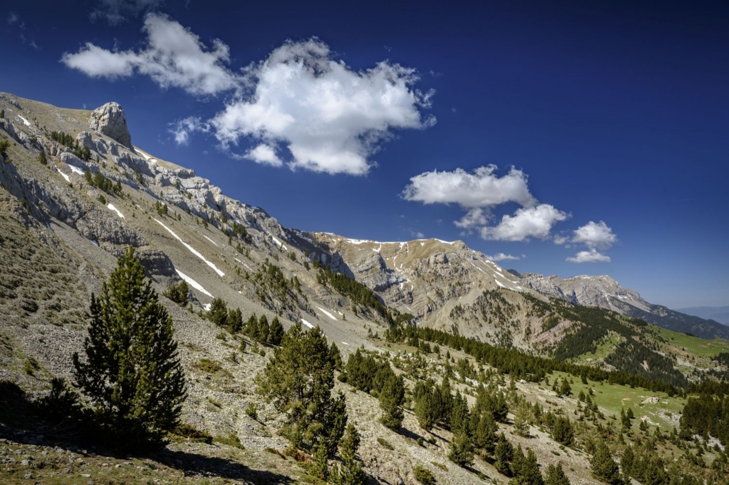 Nous continuons maintenant le long du versant oriental du Cadí bordant le sommet de la Tortuga. La vue d'ici nous montre toute la vallée du Bastareny, sans aucun doute spectaculaire. Au fond de la vallée, vous pouvez voir la ville de Bagà, 1 500 mètres plus bas.
