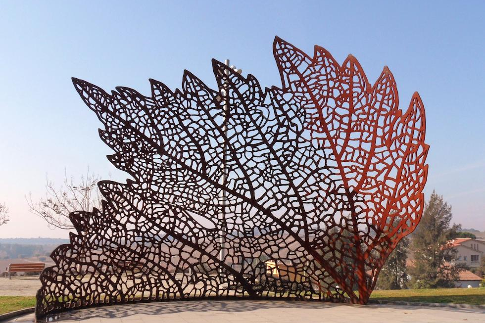 L'escultura, realitzada en acer cortén pel reconegut escultor basc Juanjo Novella, fusiona tradició agrícola i art contemporani. El seu estil, marcat per la lleugeresa visual i els espais buits, connecta perfectament amb l'entorn natural.