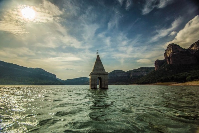 Sant Romà de Sau és l'església del segle XI situada sota les aigües del pantà. El campanar sobresurt com a indicador popular del nivell de l'aigua.