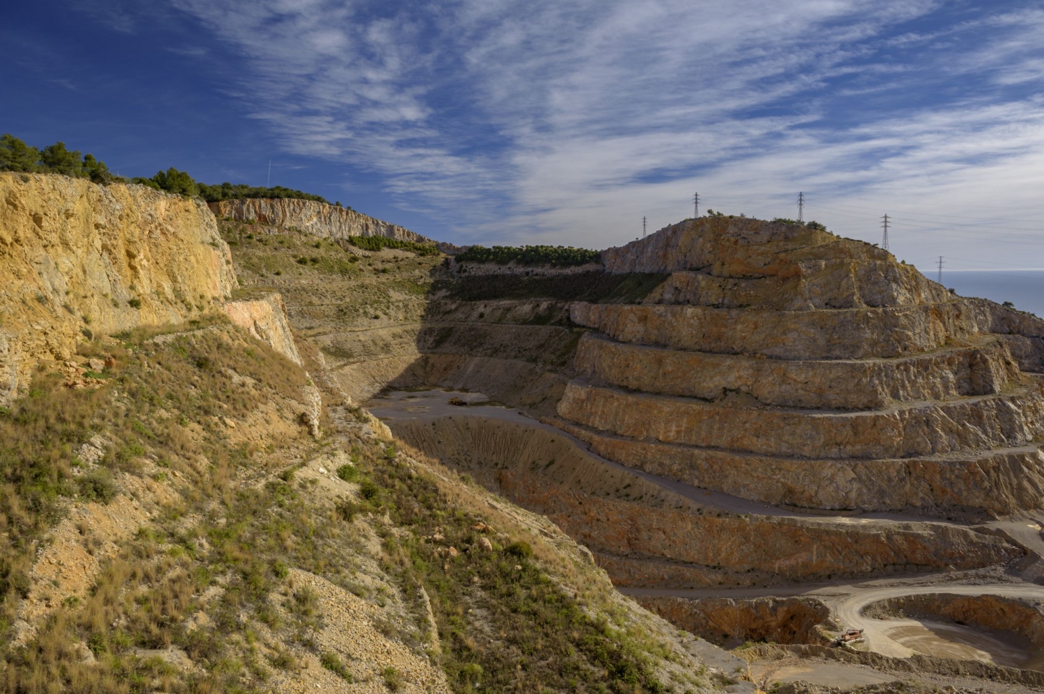 Després d'un tram de pujada moderada i vàries llaçades, el sender pren direcció Nord planejant fins a arribar a una pista forestal que voreja una pedrera d'on encara s'extreu material. En aquest tram del recorregut podrem veure diverses pedreres i extraccions a cel obert, amb el gran impacte visual que generen i la cicatriu irreparable que generen al territori. Seguim vorejant aquesta pedrera-gravera per una pista que va pujant progressivament. A partir d'aquí, la insolació pot ser acusada en els mesos d'estiu ja que trobarem poques ombres i cap font, així que convé evitar les hores i dies on el Sol piqui de valent.