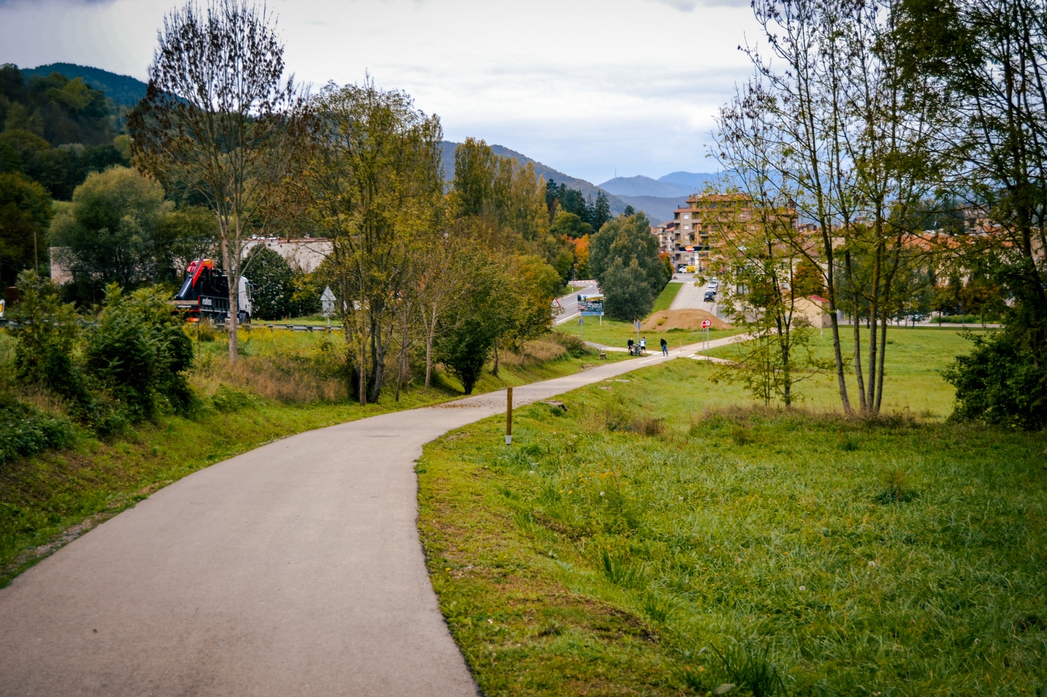 Un cop hem travessat el nucli antic seguim direcció a la Colònia Llaudet, una antiga colònia tèxtil a tocar del riu Ter, tot un emblema de la industrialització tèxtil del Ripollès. Aquest tram de via verda ha estat executat fa relativament poc temps per la Generalitat de Catalunya i permet arribar fins a Sant Pau de Segúries (8,5km).
