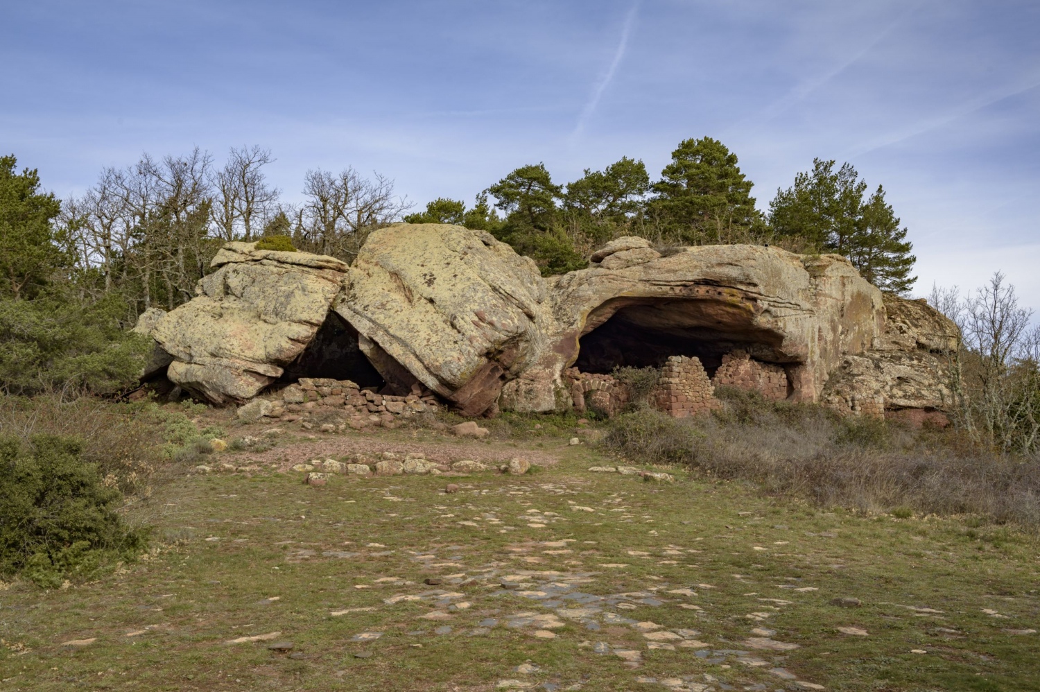Seguim per aquesta pista que voreja el cim i el pla de la Moleta pel sud. Més endavant, veurem una petita drecera a mà esquerra per un corriol que prenem. Simplement ens estalviem un petit revolt de la pista, així que si seguíssim per pista arribaríem igual al mateix lloc. El senderó ens porta a la Cova d'en Pere, una antiga construcció feta sota unes roques de grans dimensions i que resulta força interessant de veure.